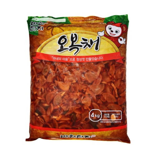 오복지35%[염장무89.5%(무, 정제소금), 염장오이6%(오이, 정제소금), 연근, 생강, 주정빙초산, L-글루탐산나트륨(향미증진제)], 정제수, 간장[정제수, 탈지대두, 밀, 정제소금, 인식향산(보존료), 누룩], 고과당, D-소비톨, 정제소금, 설탕, 식초, 홍국적색소, 주청, 빙초산, 다시노모도(복합조미식품), 소브산칼륨(보존료), 사카린나트륨(감미료), 카라멜색소, 글리신